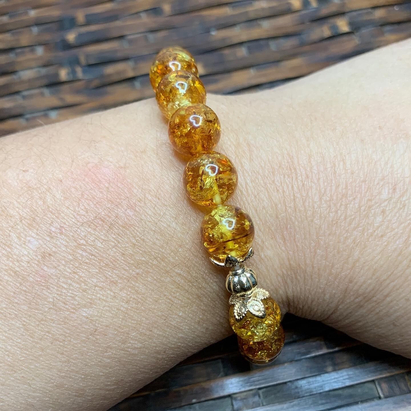 フォッシルコーラルのハートさんと キラキラのお花のアンバー