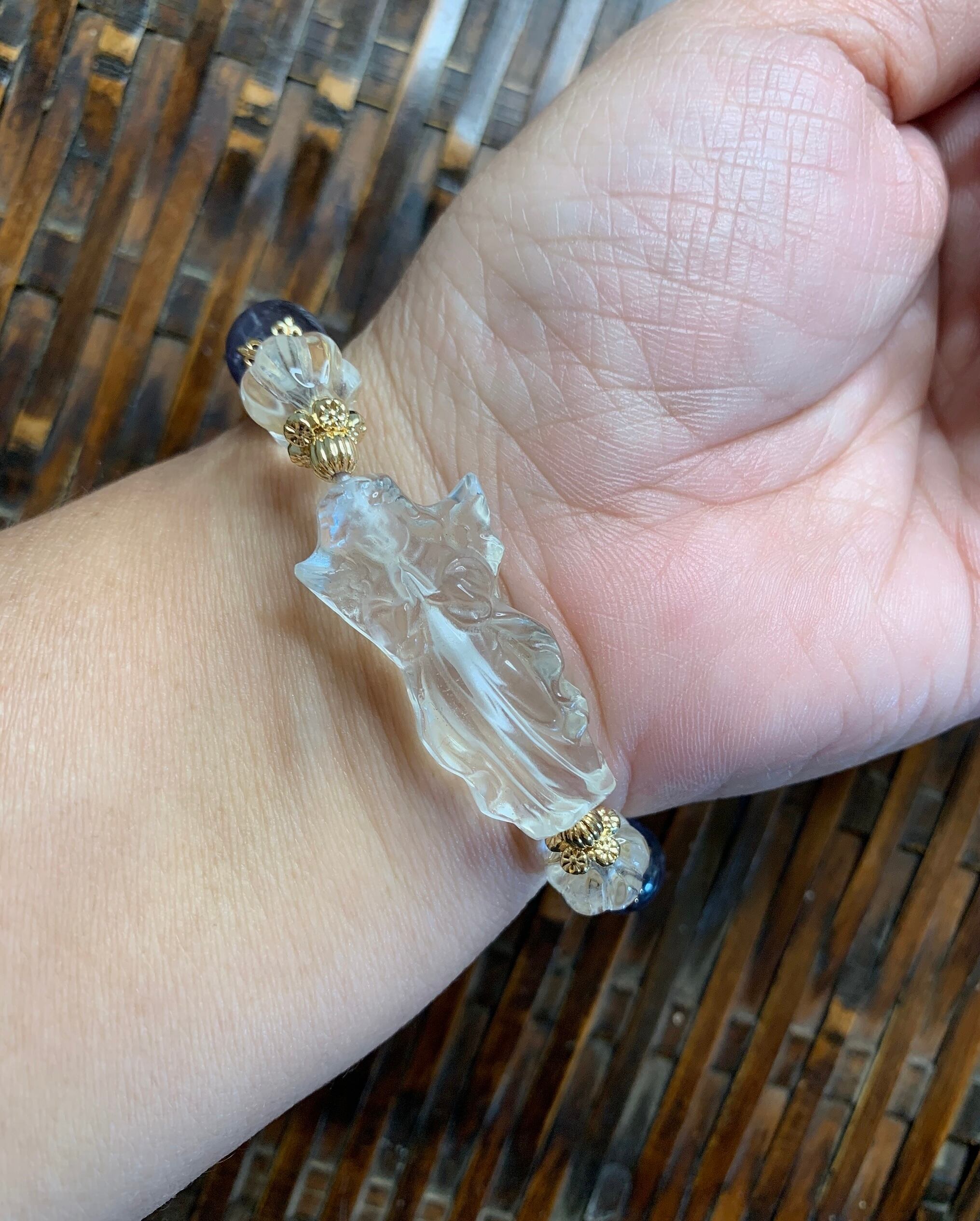 水晶クリアな天使ちゃんを濃いブルーのアイオライトと水色が可愛いデュモルチェで♡